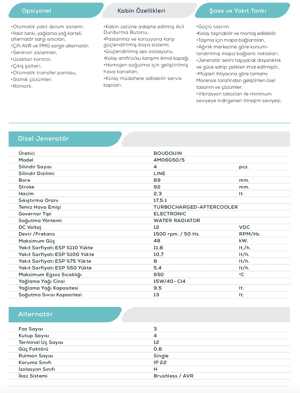 50 Hz. 400 VAC Dizel Jeneratör