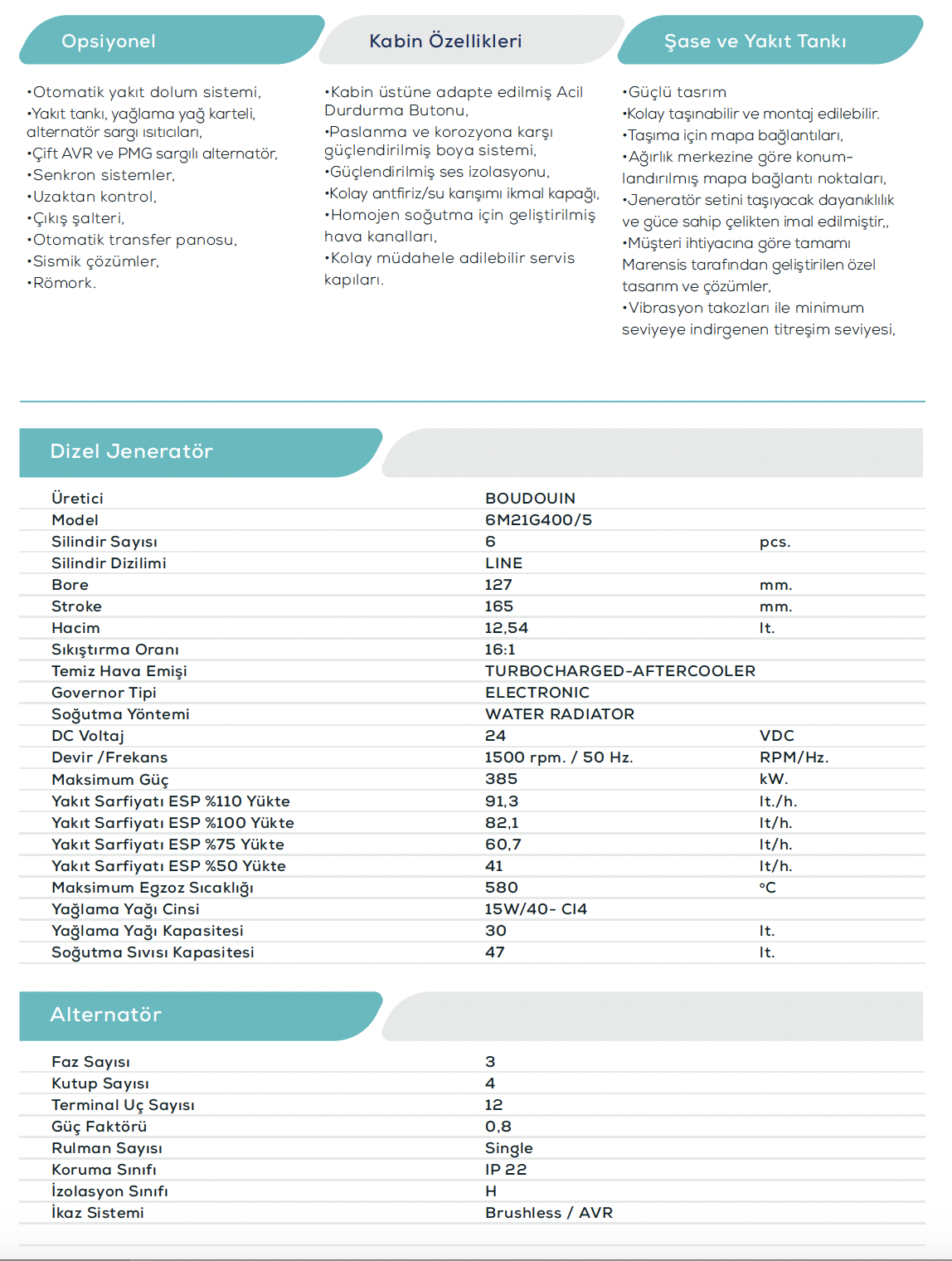 50 Hz. 400 VAC Dizel Jeneratör