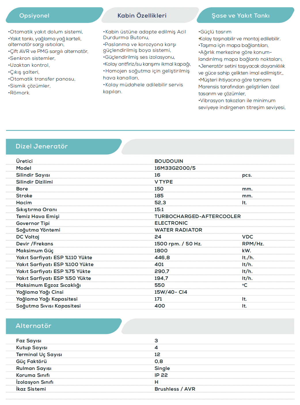 50 Hz. 400 VAC Dizel Jeneratör