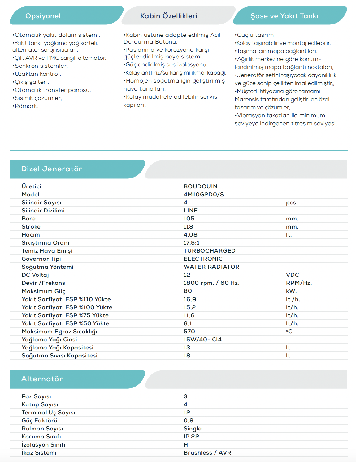 50 Hz. 400 VAC Dizel Jeneratör