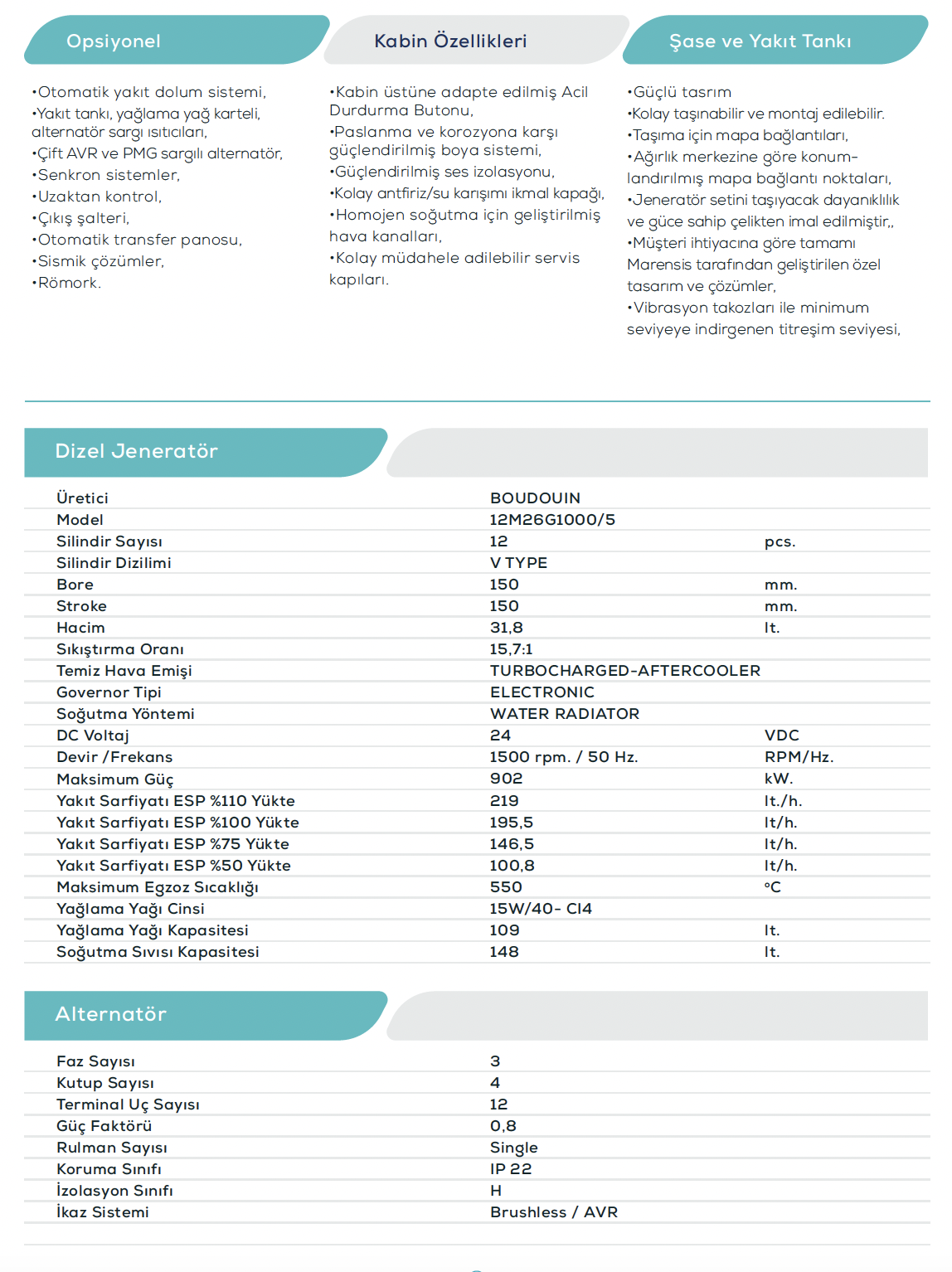 50 Hz. 400 VAC Dizel Jeneratör